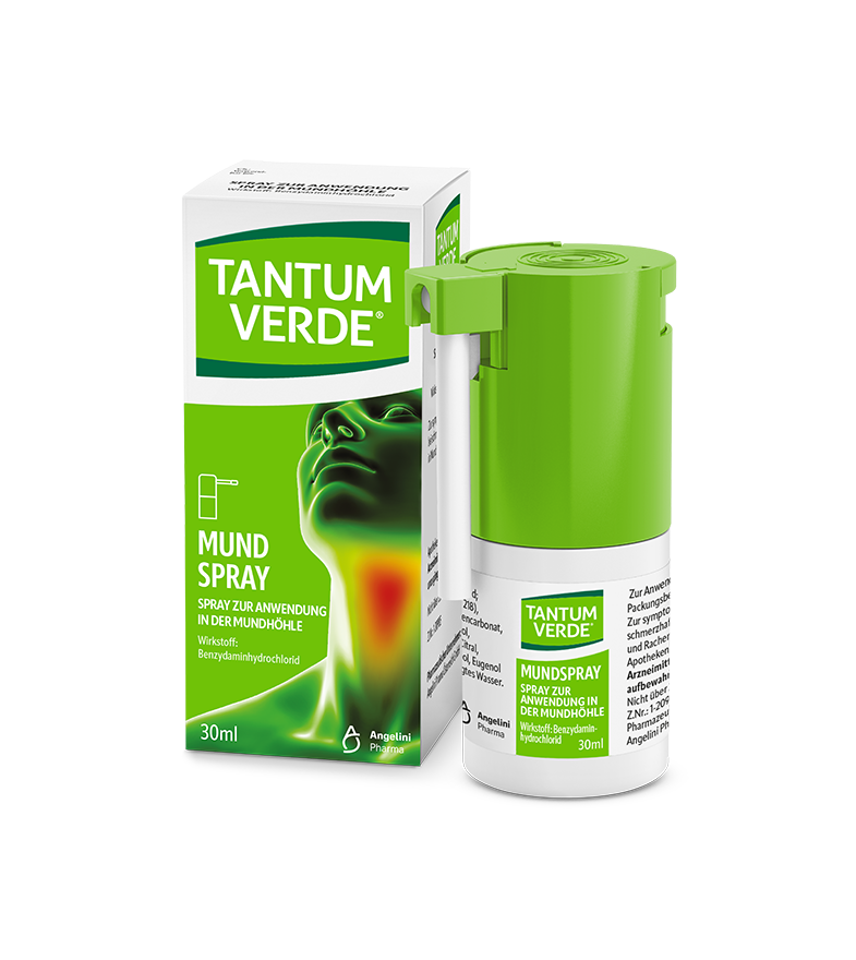 Halsschmerzen halten dich nicht auf. Dank dem Wirkstoff Benzydamin, der in Tantum Verde® Mundspray enthalten ist. Für eine gezielte lokale Wirkung gegen Schmerzen und Entzündungen. Ideal für die Kleinsten.1,2