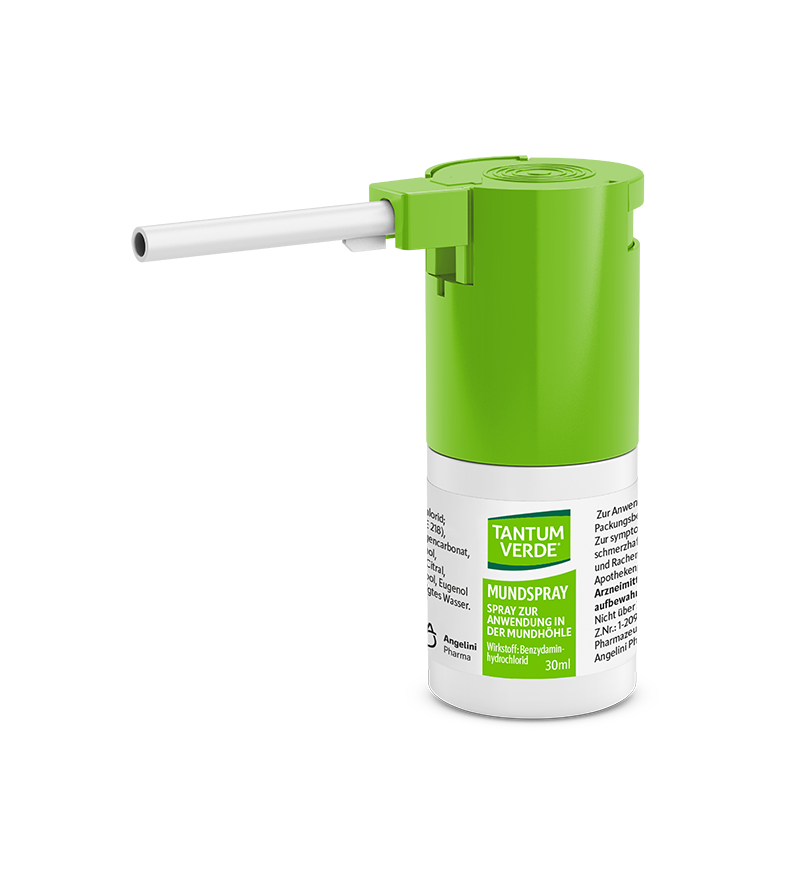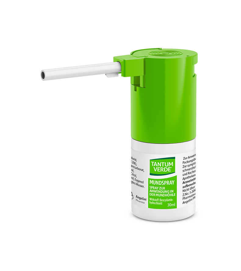 Tantum Verde® Mundspray wird verwendet zur zielgenauen Behandlung von Schmerzen und Entzündungen im Mund und Rachenraum.
