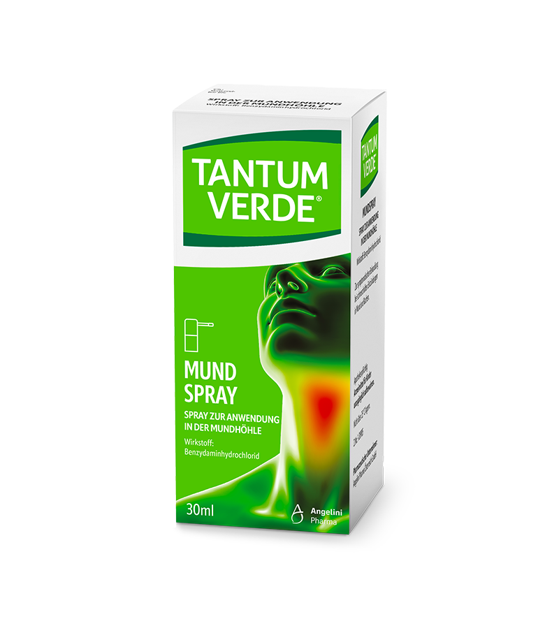 Der Wirkstoff im Tantum Verde® Mundspray ist Benzydaminhydrochlorid. Benzydamin behandelt dank seiner 4-fach Wirkung rasch den Schmerz und die Entzündung. Ideal bei Halsschmerzen und lokalen Entzündungen in Mund und Rachen. Klinisch bestätigt.